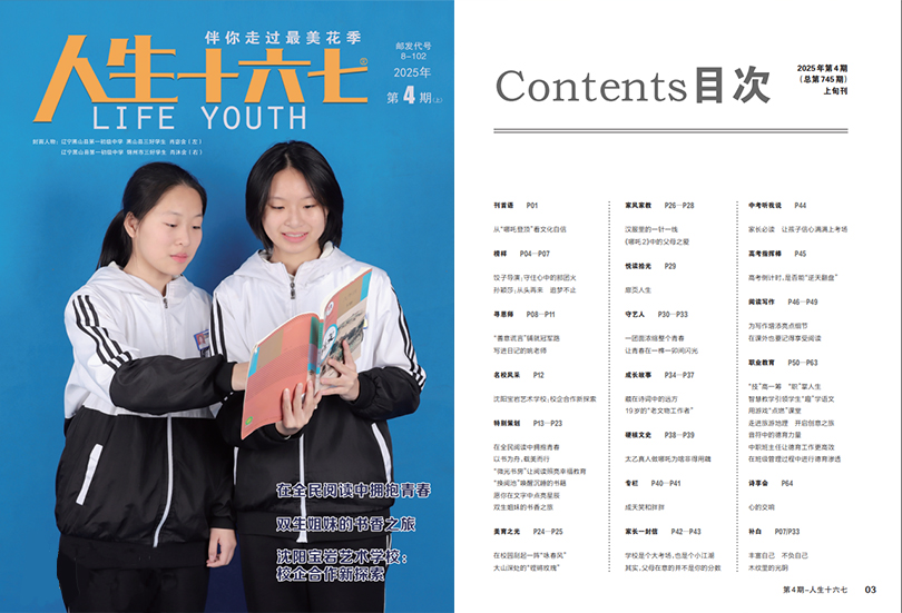 《人生十六七》杂志是一本深受年轻人喜爱的青春期刊,以其独特的视角和丰富的内容,为青少年读者提供了一个展示自我、交流思想、追求梦想的舞台。杂志创刊多年来,一直秉承着传递正能量、引导青少年健康成长的宗旨,深受广大读者的喜爱和认可。